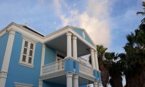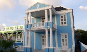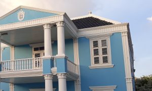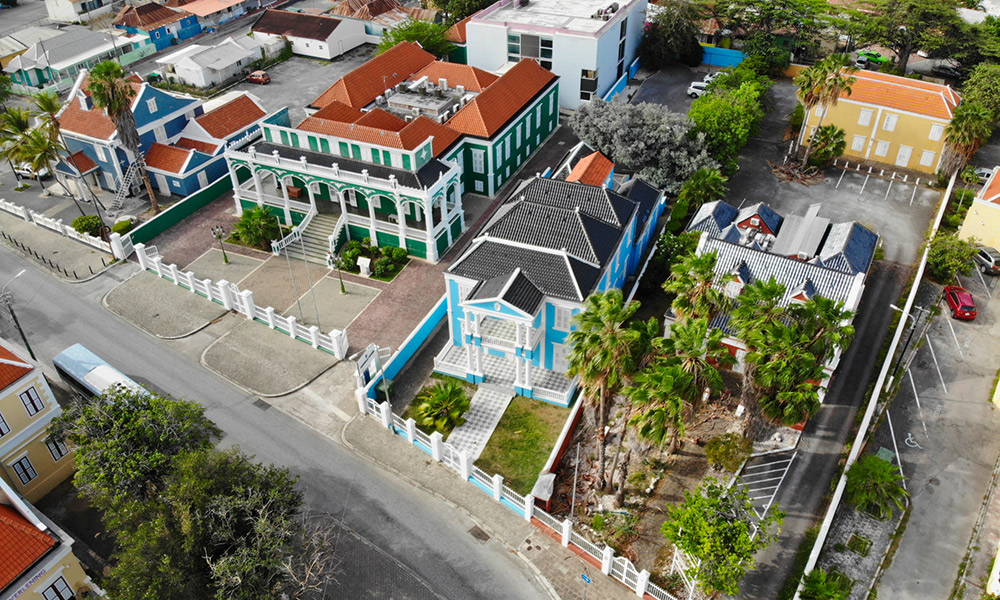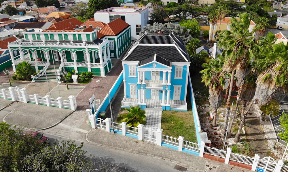 Everyone knows that our Nationaal Archief is in the famous green monument on the Scharlooweg, the one called "Bolo di Batrei" or "Bruidstaart" by locals, meaning "decorated cake" because the building looks like one. But since the Archivo Nashonal has over 4km of documentation of the past, you can imagine that they need quite a bit of space to keep all of this safe. So there is a separate new building where everything is archived. Not many people know that our monument right next to it also forms part of that same organization. In tall light blue monument is where the administrative department is housed.
