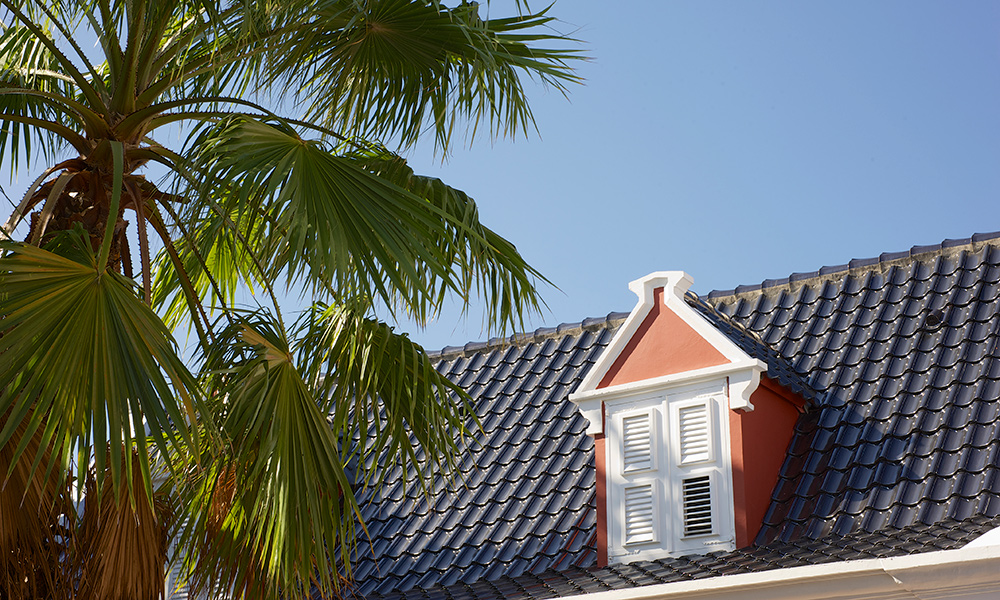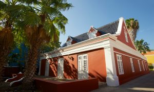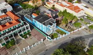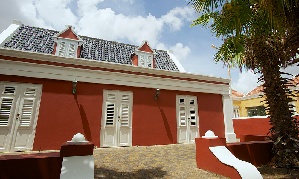 When heading to Willemstad and approaching Punda, you will first drive down Berg Altena, into the city with Pietermaai on your left and Scharloo on your right. Right there, in the beginning of Scharloo, you can spot this gem from the street! What is also unique is that it has a wide open view as there are no buildings build in front of it. From its terrace you can look over Plasa Horacio Hoyer towards Juliana plein. Day and night this provides a cosmopolitan view on the historic city of Curacao.